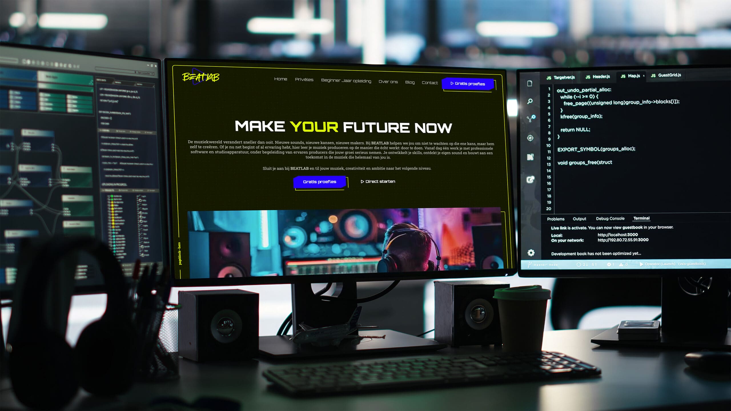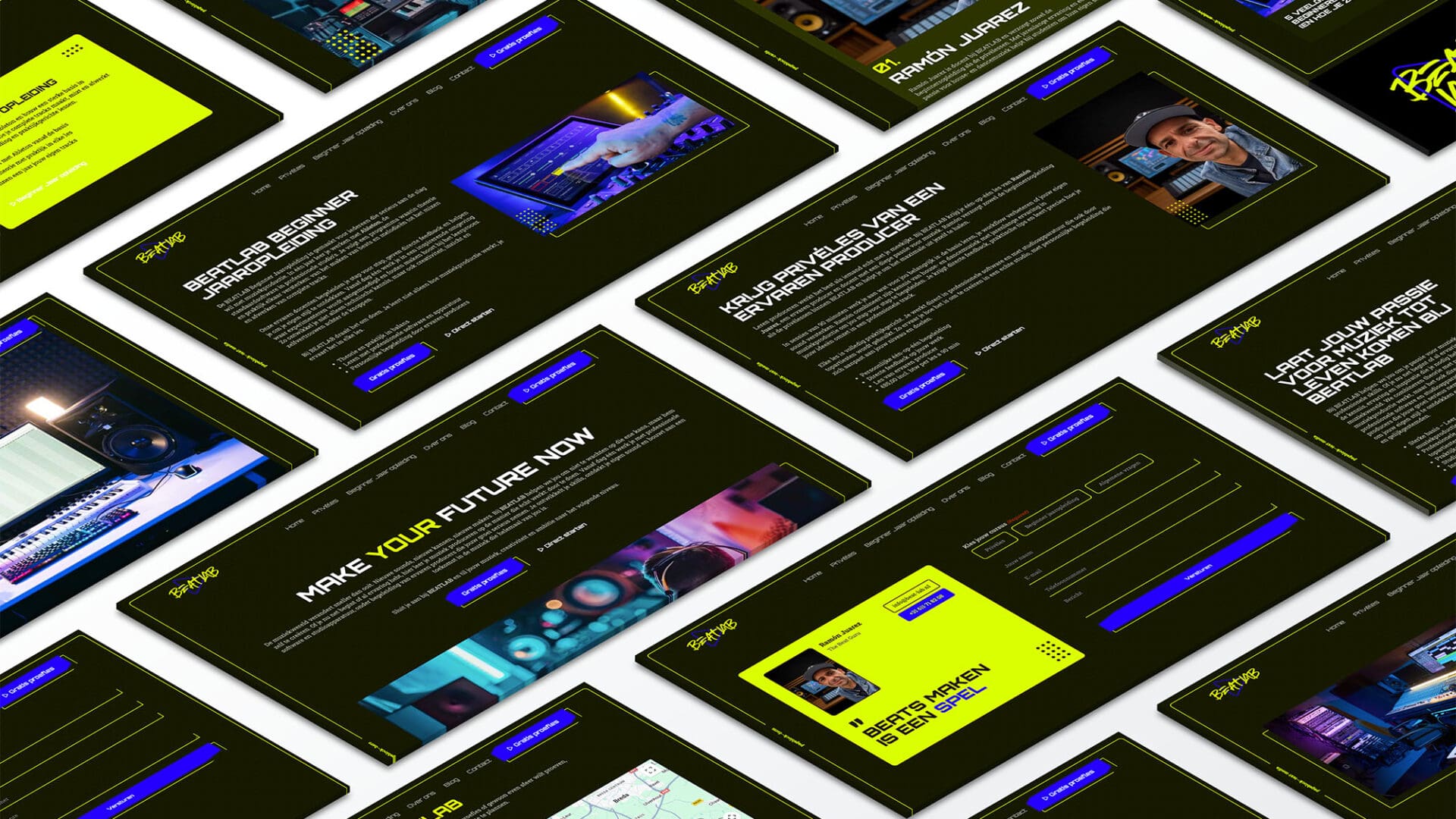 Het webdesign vertaalt de energie en creativiteit van Beatlab naar een heldere en toegankelijke online ervaring. De website is strak opgebouwd, gebruiksvriendelijk en gericht op conversie, met ruimte voor beleving en een duidelijke focus op groeien.