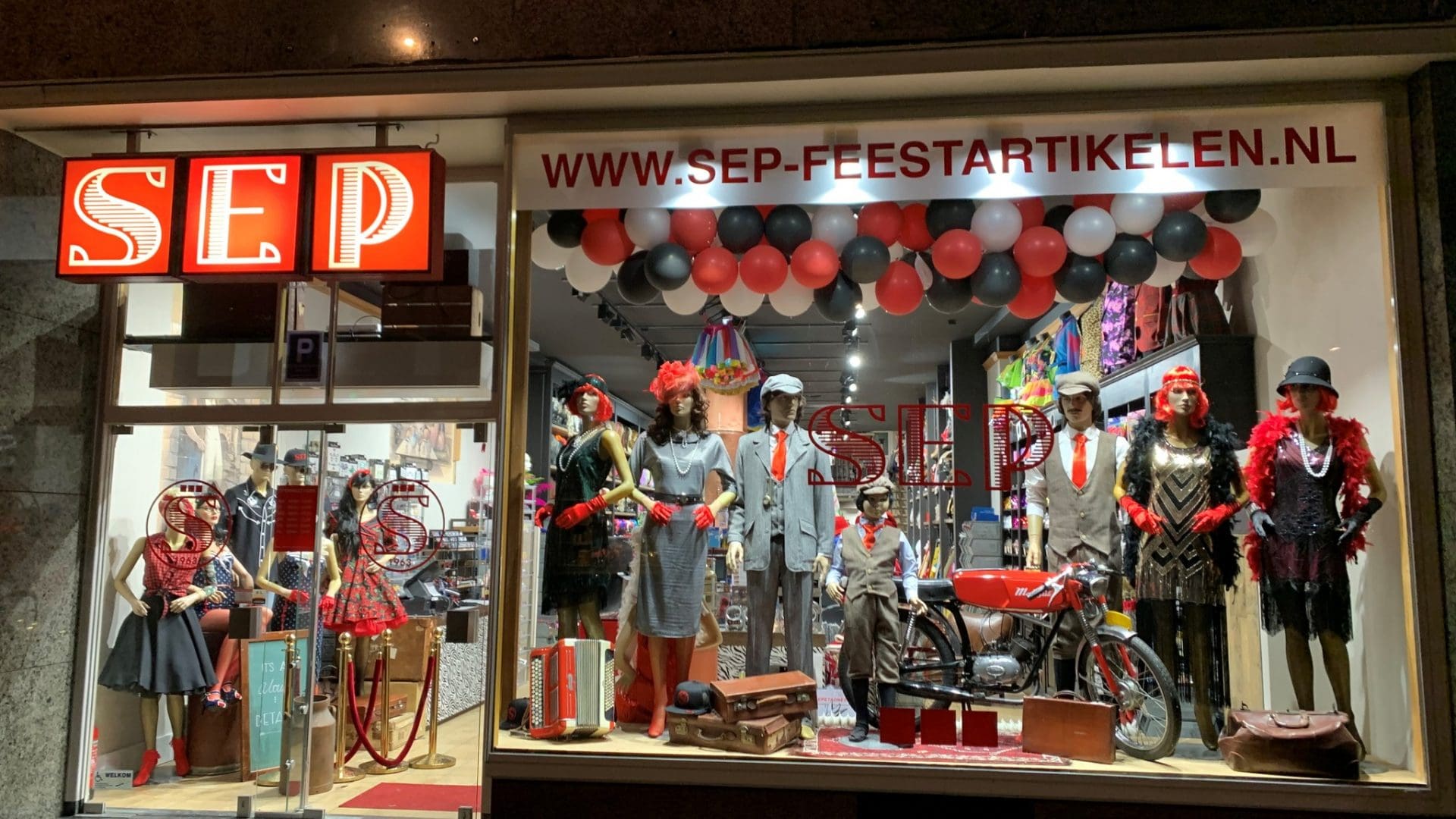 SEP Feestartikelen is een begrip in Noord-Brabant op het gebied van carnavalskleding. De beleving is het belangrijkste bij deze feestwinkel in Roosendaal. Al bij binnenkomst kom je in de feeststemming door de gezellige sfeer en feestmuziek. Gedurende het jaar veranderen de etalage en winkelinterieur mee, zodat je voor iedere feestdag terechtkunt in deze winkel. Het assortiment voor themafeesten is groots, dus je scoort voor iedere festiviteit de juiste aankleding in deze winkel.